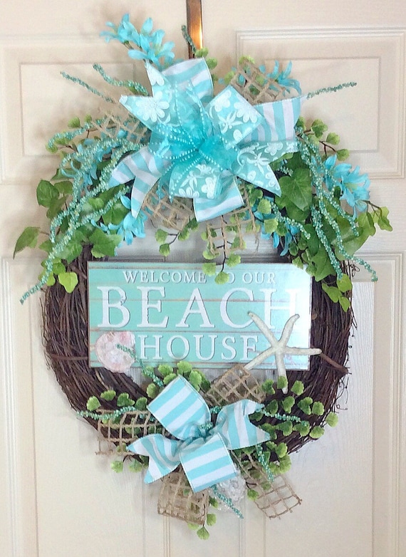 Welcome To Beach House Wreath Mother S Day Gift Deco Etsy