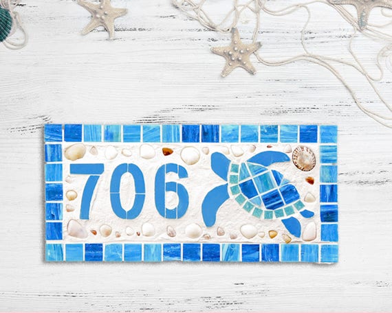 Mosaic House Number Plaque Outdoor House Number Beach Mailbox Etsy