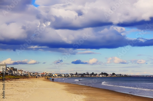 Atlantic Ocean Usa Maine The Beach With People Watching The